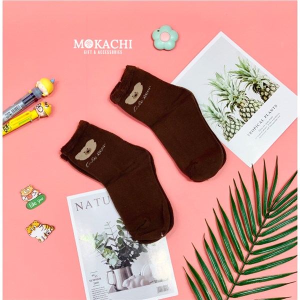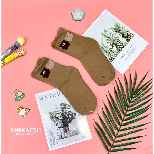 Tất cao cổ hoạt hình 1 gấu- nâu sẫm