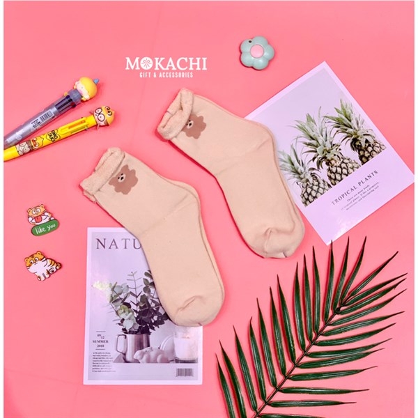 Tất cao cổ hoạt hình 2 gấu- nâu nhạt